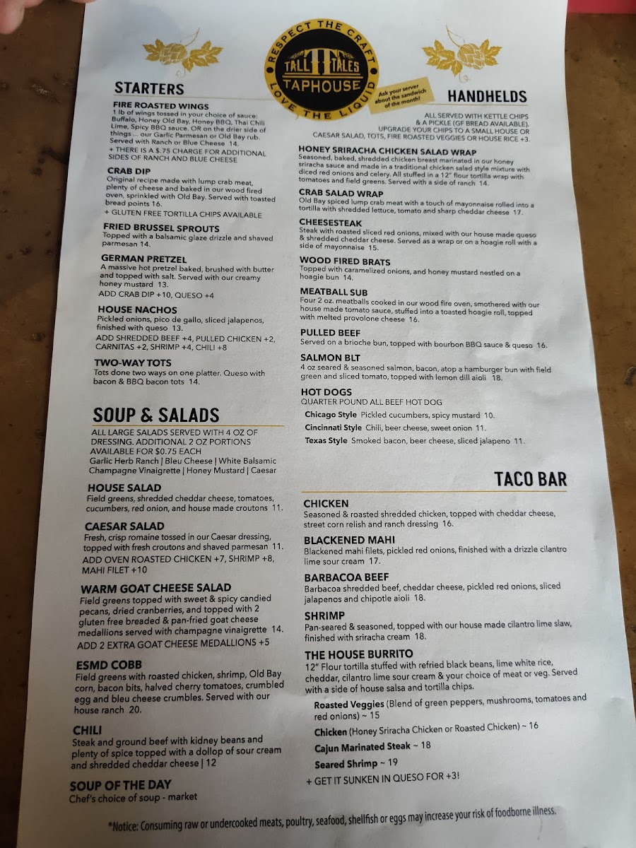 Welcome to Tall Tales Taphouse, a hidden gem in Parsonsburg, MD, where culinary creativity meets a cozy atmosphere. Nestled at 6929 Heron Grove Ct, this inviting taphouse is the place to unwind, enjoy delicious food, and savor a diverse selection of beers.
